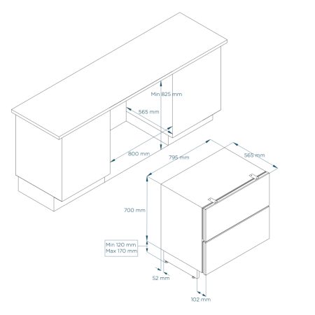 Entdecken Sie den Norcool G3 Schubladenkühlschrank aus Edelstahl: ein vielseitiger Einbau-/Tauchschubladenkühlschrank mit einer Breite von 80 cm. Sie profitieren von LED-Beleuchtung, verstellbaren Hinterbeinen, digitalem Thermostat, Türalarm, verbessertem Schubladensystem und einem Geräuschpegel von 37 dB. Erleben Sie die Bequemlichkeit und die fortschrittlichen Funktionen des Norcool G3 für ein verbessertes Kühl-Erlebnis. Laden Sie die Norcool Schubladenkühlschrank G3 Broschüre. Sind Sie daran interessiert, dieses Produkt weiterzuverkaufen? Fragen Sie nach den Bedingungen.