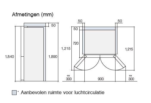 | Afmetingen (mm) | Breedte : 900 Hoogte: 1,840 Diepte: 720 |