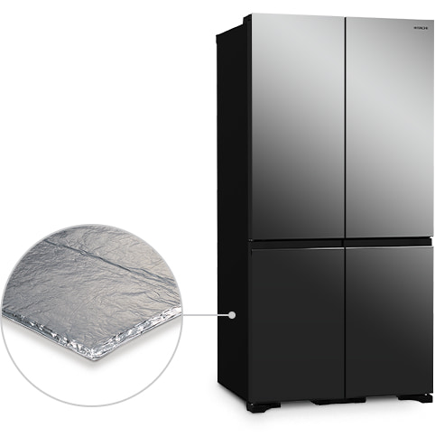 Dankzij deze VIP-constructie realiseren de koelsystemen van Hitachi een koelbehoud tot wel 15 uur bij stroomuitval, een toonaangevende prestatie op het gebied van thermische isolatie en energiebesparing.